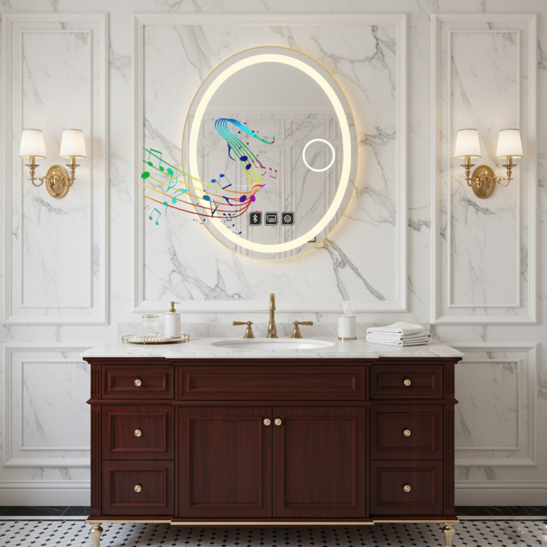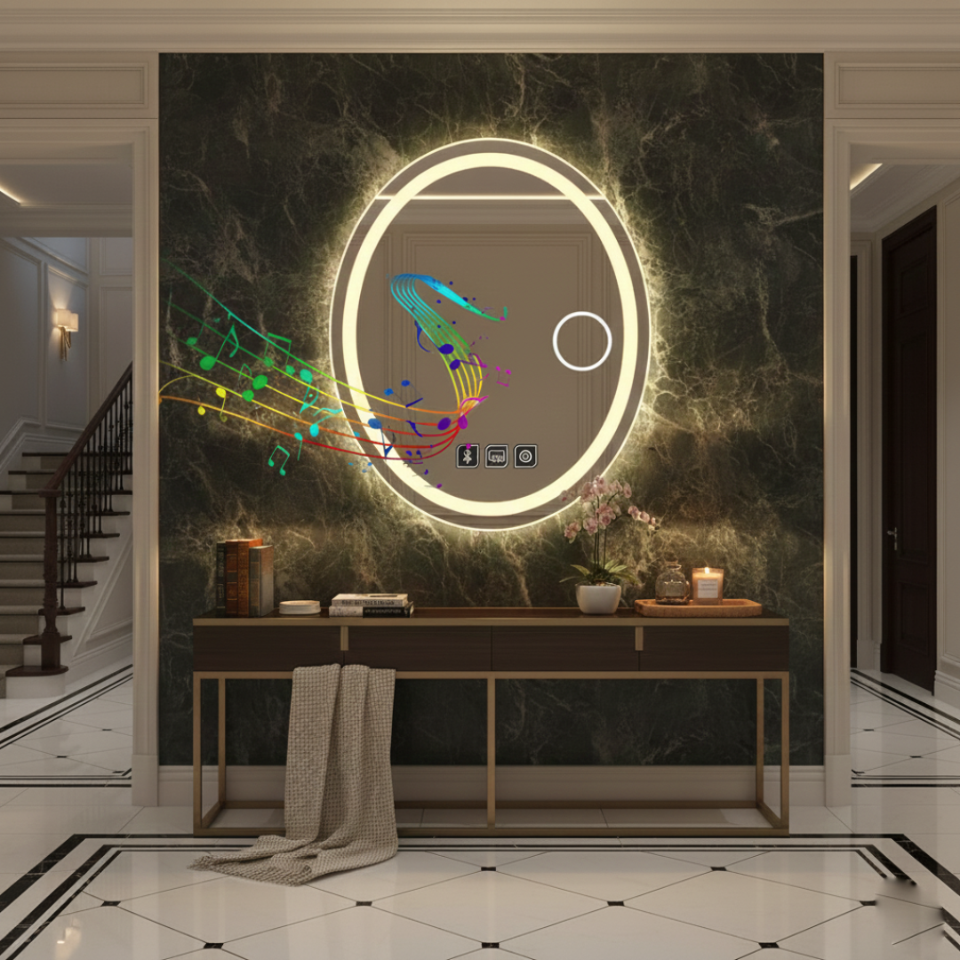 Bu modelimiz yalnızca bir ayna değil; LED aydınlatma, müzik sistemi ve büyüteç özelliklerini bir araya getiren çok amaçlı bir dekorasyon ve teknoloji ürünüdür.